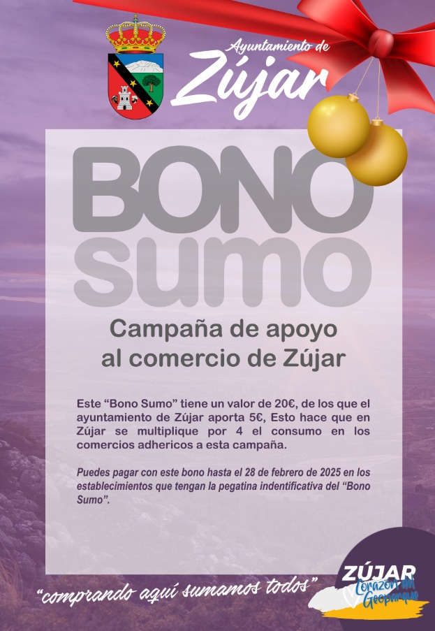 El Ayuntamiento de Zújar impulsa la campaña «Bono Sumo», una iniciativa destinada a fomentar el consumo en los comercios locales y apoyar a los pequeños empresarios del municipio.