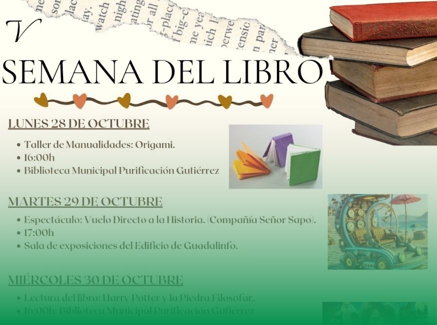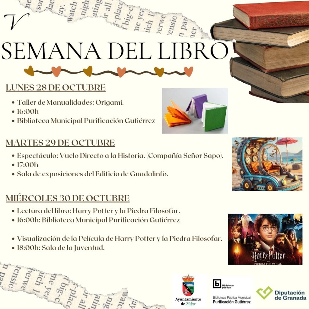 ¡La V Semana del Libro llega a Zújar con actividades especiales para niños y niñas! Ven y disfruta de talleres, espectáculos y lecturas que te harán viajar por el mundo de la literatura y la imaginación. A continuación, te compartimos la programación completa: